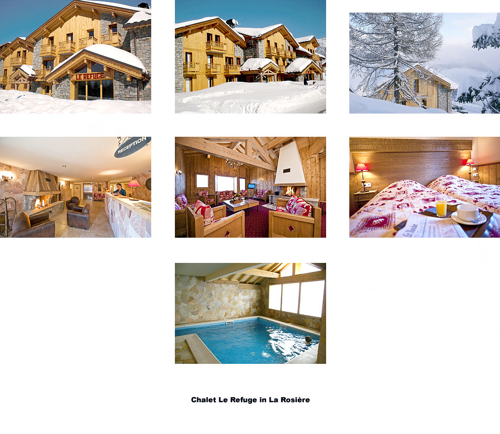 Chalet Le Refuge / La Rosière - San BernardoDie Vier-Sterne-Residenz Chalet Le Refuge gehört zur Gruppe Chalet Altitude. Die Residenz Chalet Le Refuge liegt auf ca. 1850 m, nahe dem Zentrum von La Rosière und nur wenige Schritte von den Pisten entfernt. Den Hausgästen stehen ein beheiztes Schwimmbad und eine Sauna kostenlos zur Verfügung. Die Appartements in La Rosiere können am Anreisetag ab 17.00 Uhr bezogen werden und müssen am Abreisetag bis 10.00 Uhr geräumt sein. Hier gehts zu den Bildern der Residenz Chalet Le Refuge. Appartement für 6 Personen luxe 4-Zimmer, ca. 80 qm, 3 Schlafzimmer mit 2 Einzelbetten oder franz. Doppelbett, Wohnraum mit Couch. Küchenzeile mit Geschirrspüler, Mikrowelle, Herd mit Ceranfeld,